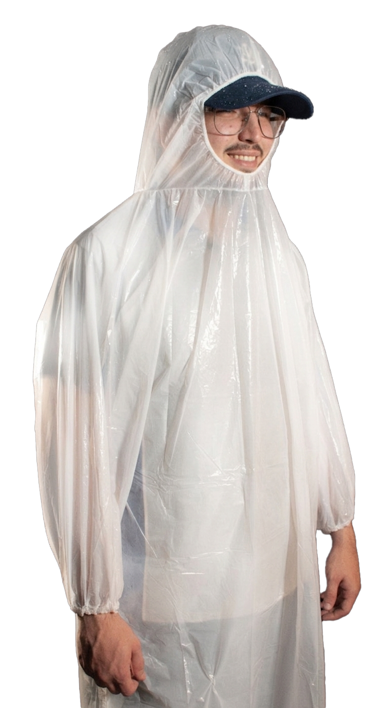 Poncho Descartable HYGIEINA – Barrera Sanitaria Integral Poncho de protección ligero y descartable fabricado en polietileno, diseñado para ofrecer una barrera sanitaria eficaz contra la humedad, salpicaduras leves y partículas. Su diseño incluye capucha con ajuste elástico y mangas largas (80 cm) con puños elásticos, asegurando una cobertura completa y cómoda para el usuario en diversas tareas operativas.