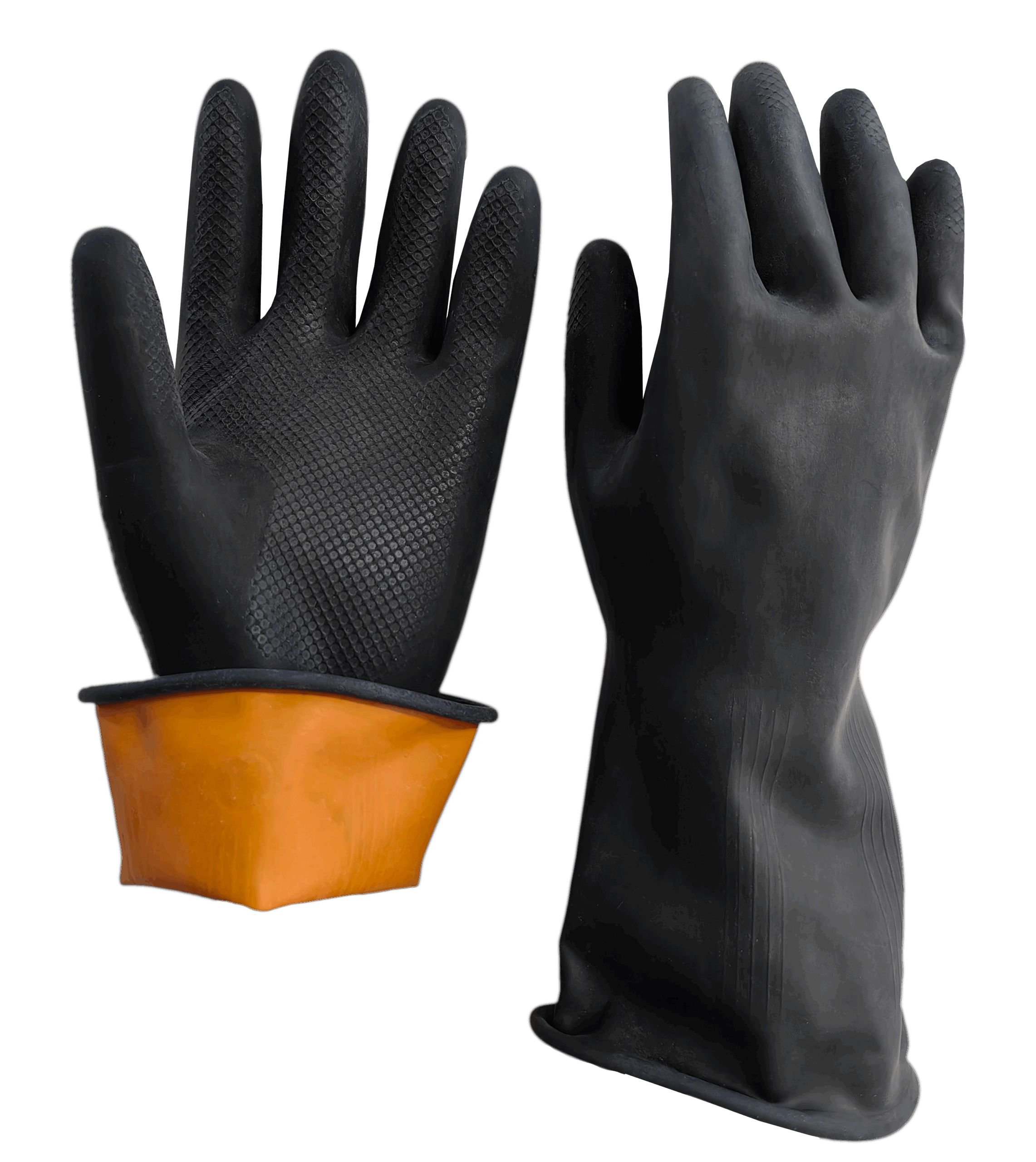 Guante de Látex natural SUPER120, un modelo de alta resistencia y extra-grueso (5 mm), diseñado para tareas industriales pesadas. Garantiza impermeabilidad total y resistencia a químicos agresivos como alcalinos, acetonas y amoníaco concentrado. Posee un interior Flockado para confort, un largo de 300 mm y una palma texturizada para un agarre seguro en entornos húmedos.