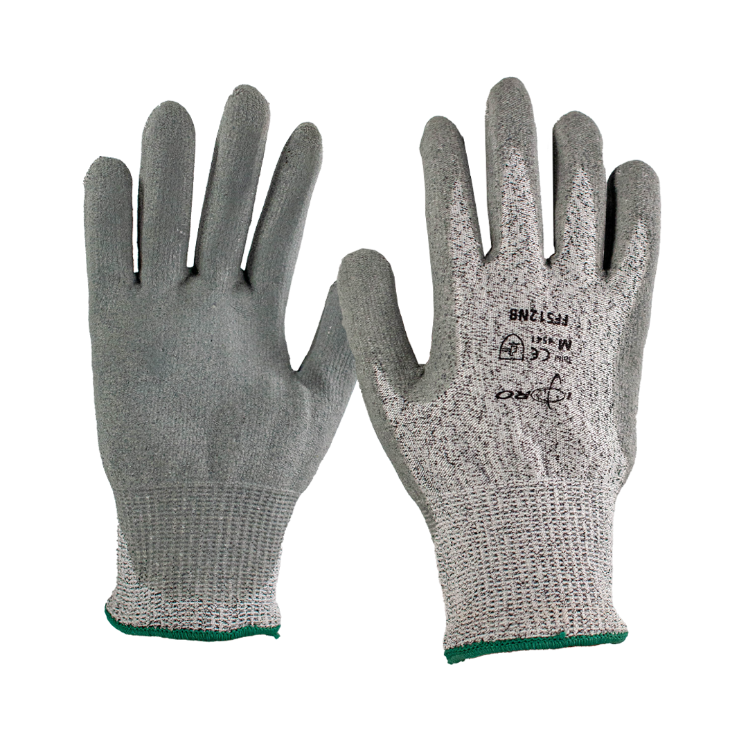 El modelo FF512NB combina la protección anticorte de su forro textil (62% PE + 24% Poliéster + 14% Fibra de Vidrio) con los beneficios de agarre del revestimiento de nitrilo. La capa externa de Nitrilo Esponjoso de color Gris con un acabado Microadherible permite un manejo de objetos altamente seguro y preciso en condiciones variables.