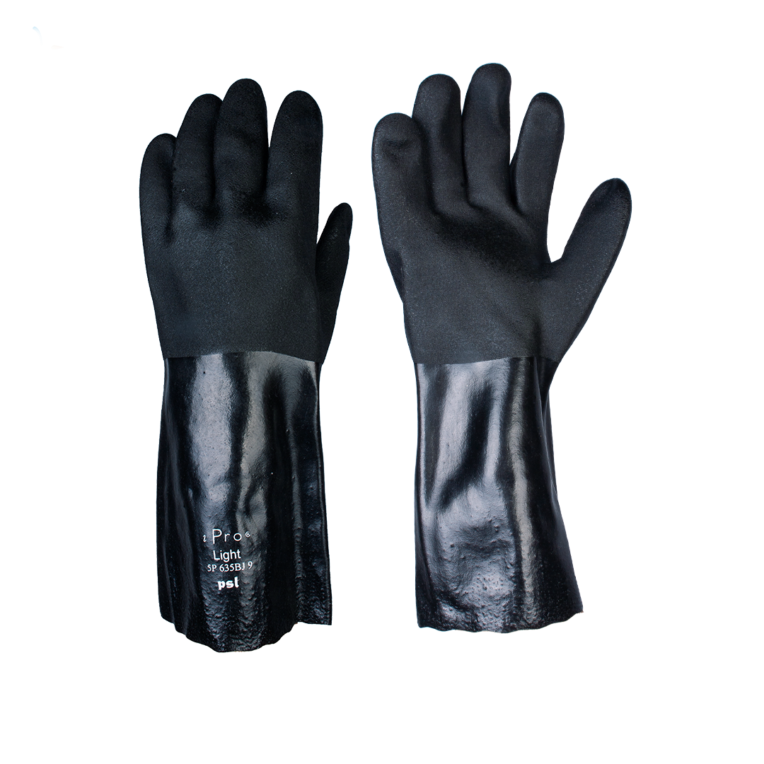 Guante iPro® Petrogrip PVC Doble (14″) Los guantes de PVC de peso mediano con soporte textil de 100% algodón, son impermeables al agua, jabones, detergentes, barro y a un amplio espectro de químicos como ácidos, sustancias alcalinas, causticas, solventes, aceites y grasas. Poseen alto nivel de resistencia mecánica a la ruptura y abrasión en condiciones de inmersión o en medio mojado con líquidos y grasas. Soporte textil hipo-alergénico, anti-dermatitis. Talla disponible: XL/10 (Talla única)